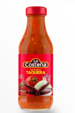 La salsa taquera es picante y ligeramente espesa, perfecta para acompañar tacos. Su sabor robusto con un toque de chile y especias la hace esencial en la cocina callejera mexicana.